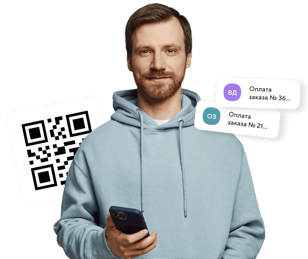 — Оплата по QR-коду, или через СБП. Подходит для любых ситуаций — от выставления счёта до оплаты курьеру. Клиент сканирует код и платит со своего телефона.