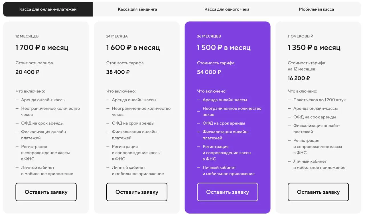 Разберём тариф аренды облачной кассы для онлайн-платежей.