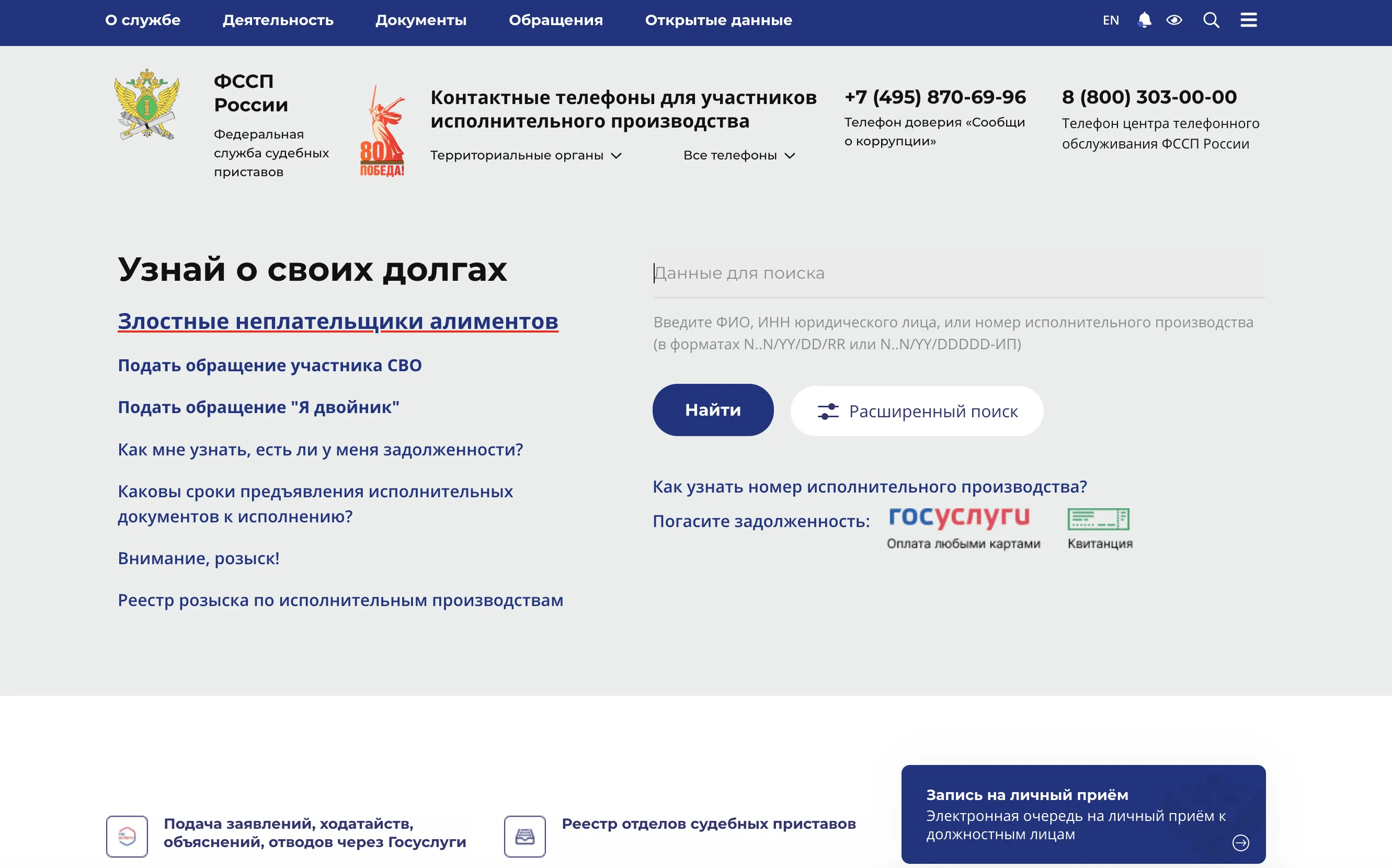 Зайти на сайт ФССП стоит, чтобы проверить, есть ли у компании долги, которые уже пытаются взыскать приставы. Это могут быть штрафы, налоги, неисполненные решения суда.