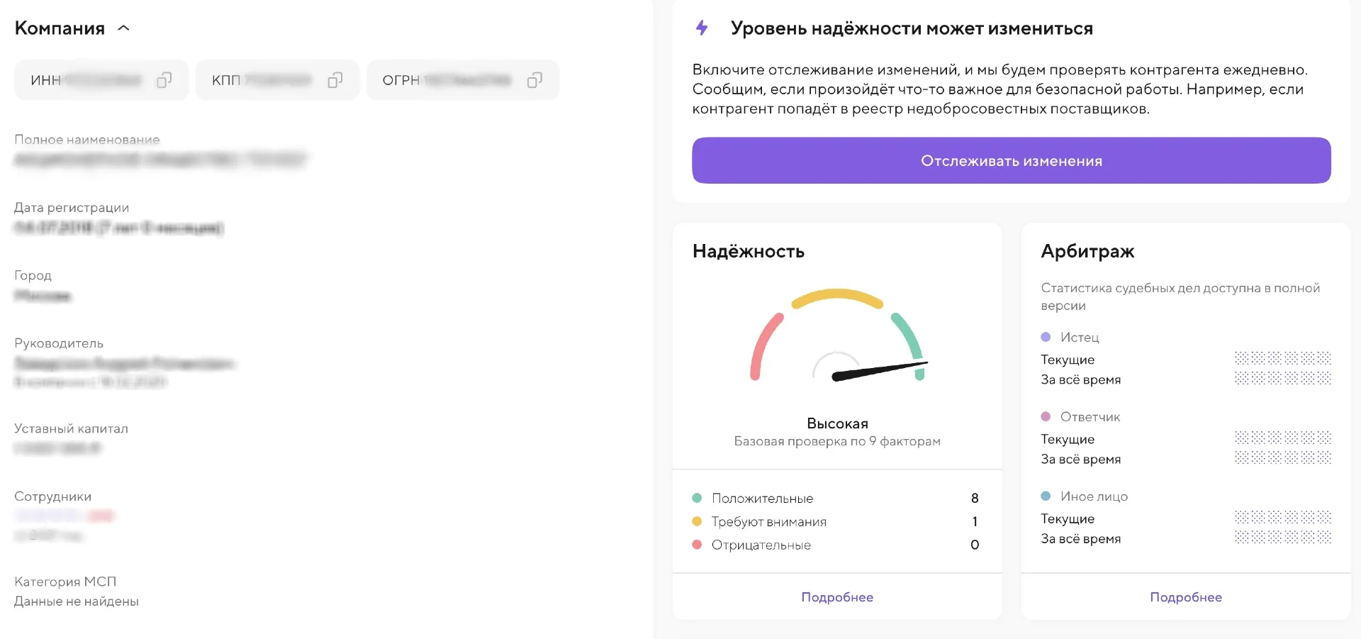 С помощью этого сервиса можно быстро узнать, как работает компания. Достаточно ввести ИНН, ОГРН или название — сервис соберёт всю ключевую информацию для проверки. Можно получить все основные данные: от регистрации до наличия лицензий.