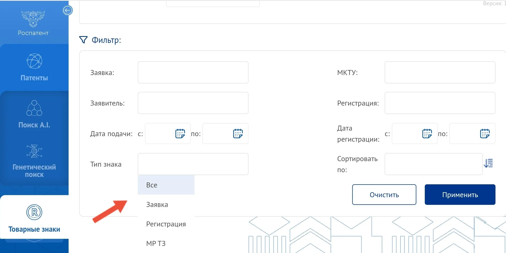 2. Убедитесь, что такой знак никто не регистрировал до вас. Проверить это можно онлайн на сайте Роспатента. Можно искать не только зарегистрированные товарные знаки, но и те, на которые компания подала заявку.
