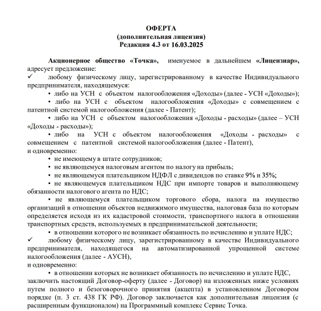 Разберём пример оферты Онлайн-бухгалтерии Точки для ИП.