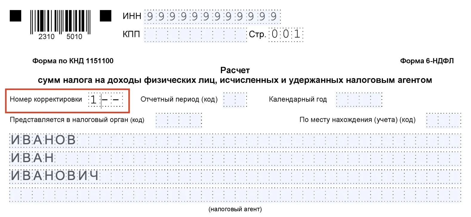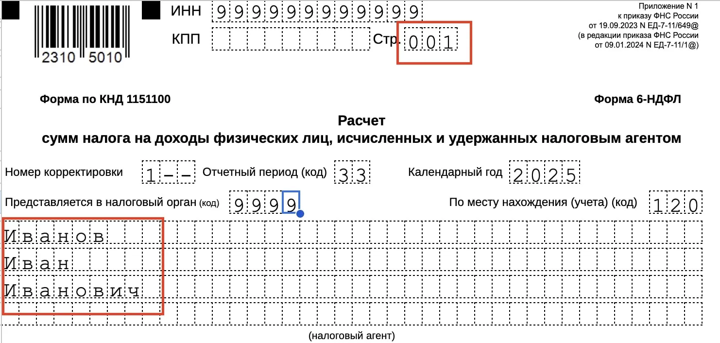 - При подаче уточнённого расчёта номер корректировки увеличивается на единицу: «1–», «2–» и так далее.