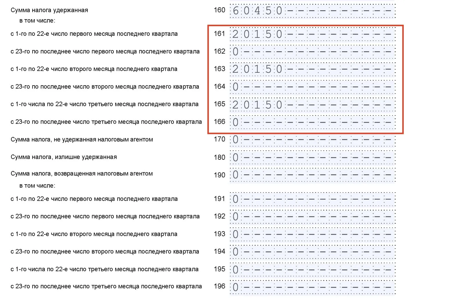 - Строка 170 – для неудержанного налога, например при выплате в натуральной форме.