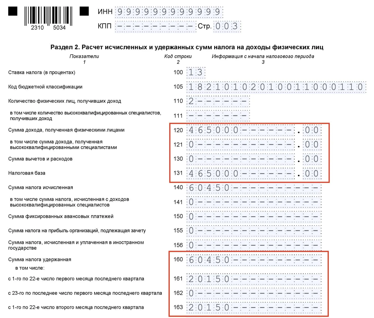 - Исчисленный и удержанный НДФЛ.