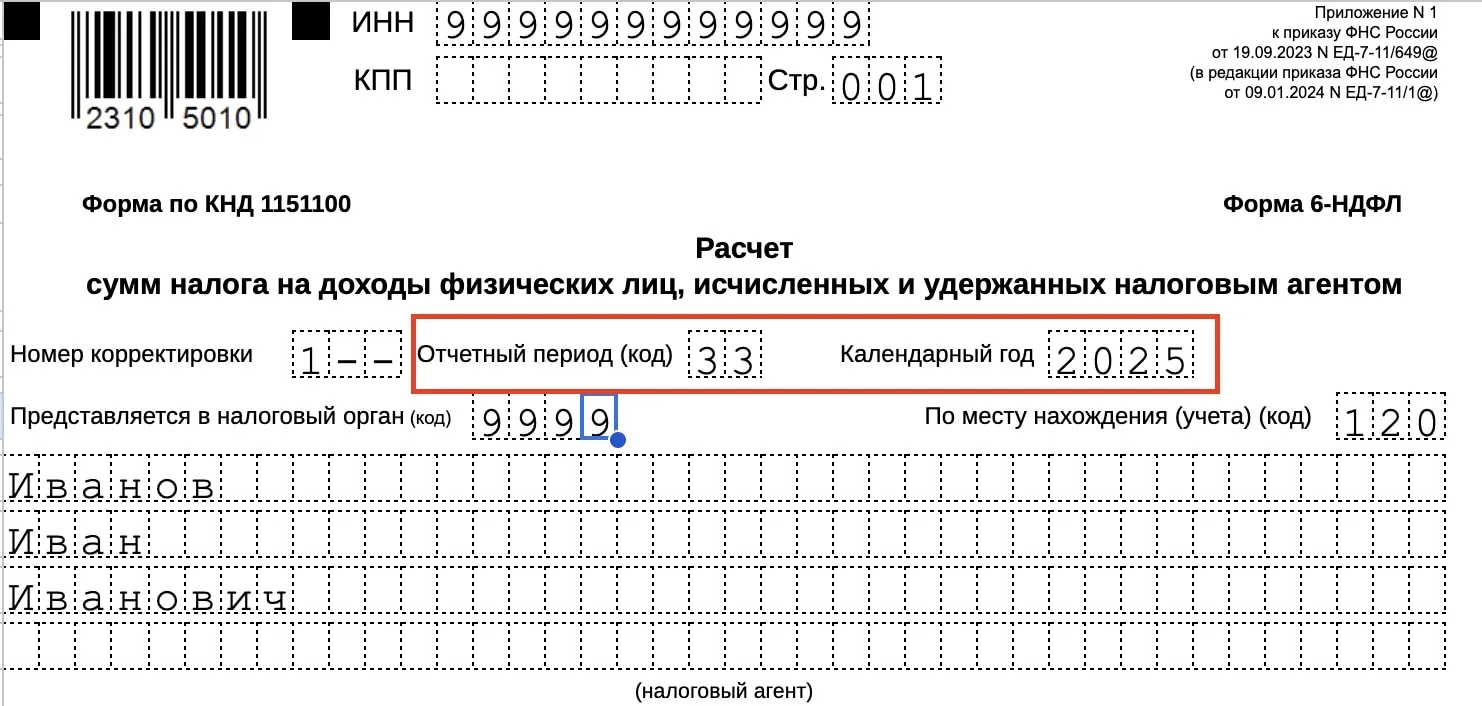 Ошибка: указан неверный код периода в поле «Отчётный период (код)».