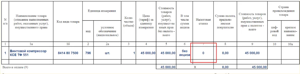 Расчёт НДС со ставкой 0%
