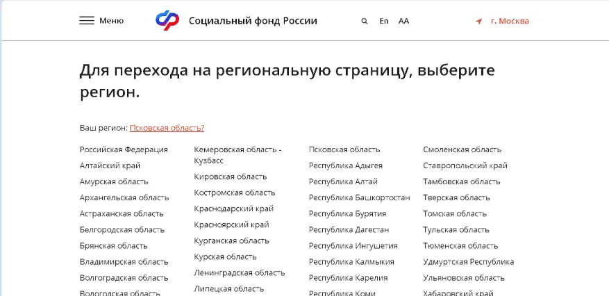 Сюда относятся подведомственные отделениям СФР учреждения, например реабилитационные центры. А также офисы клиентского обслуживания. Их список с адресами для городов и районов можно найти на сайте СФР, в разделе «Выберите свой регион». Выберите субъект РФ из списка.