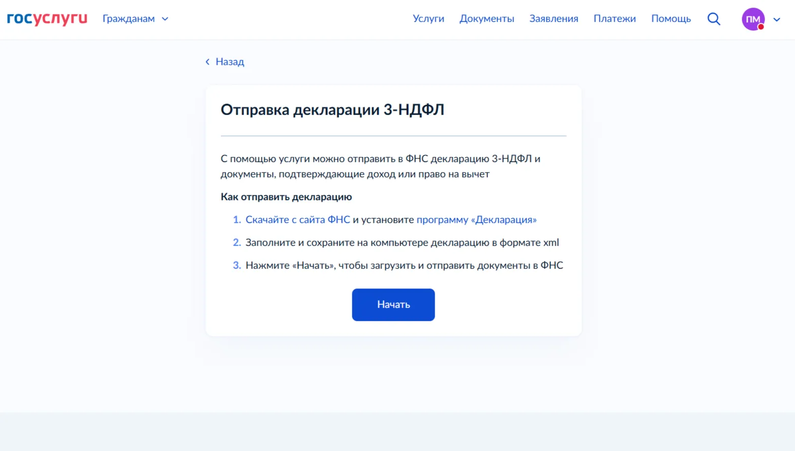 Как отправить 3-НДФЛ через Госуслуги