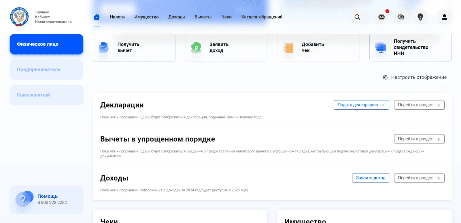 Проверку декларации можно отслеживать в разделе «Декларации», а состояние расчётов — в разделе «Налоги».
