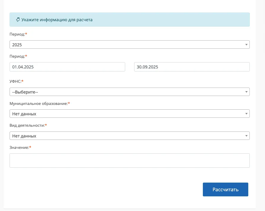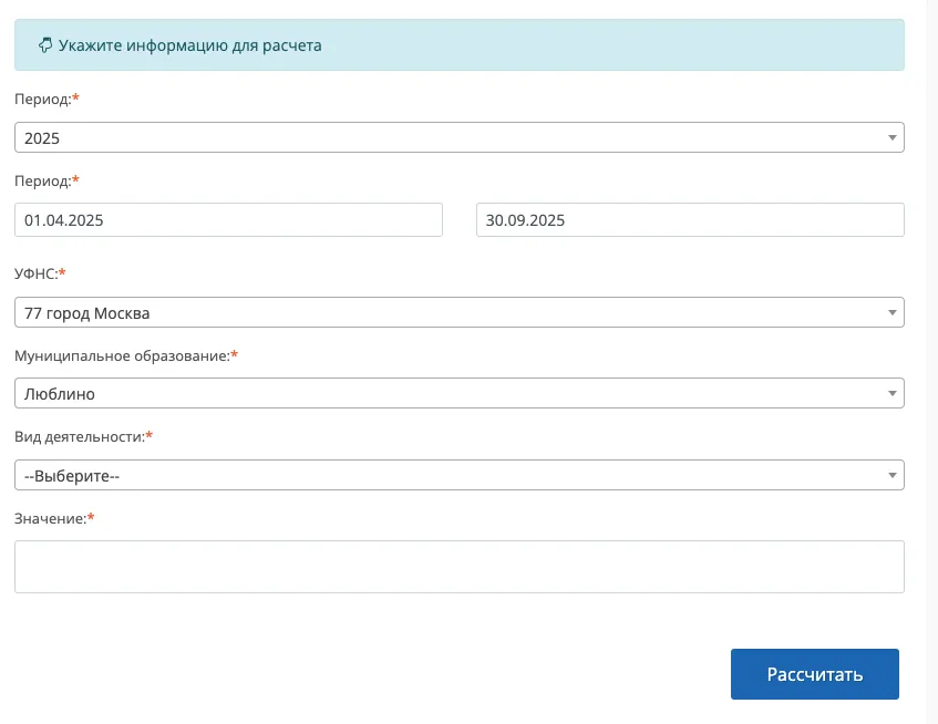 После того как выбрали деятельность, нажмите «Рассчитать».