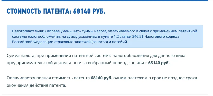 Калькулятор расчёта патента для ИП — сервис налоговой.