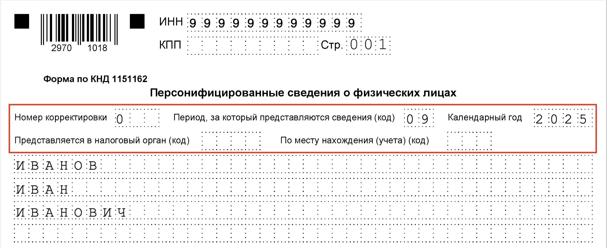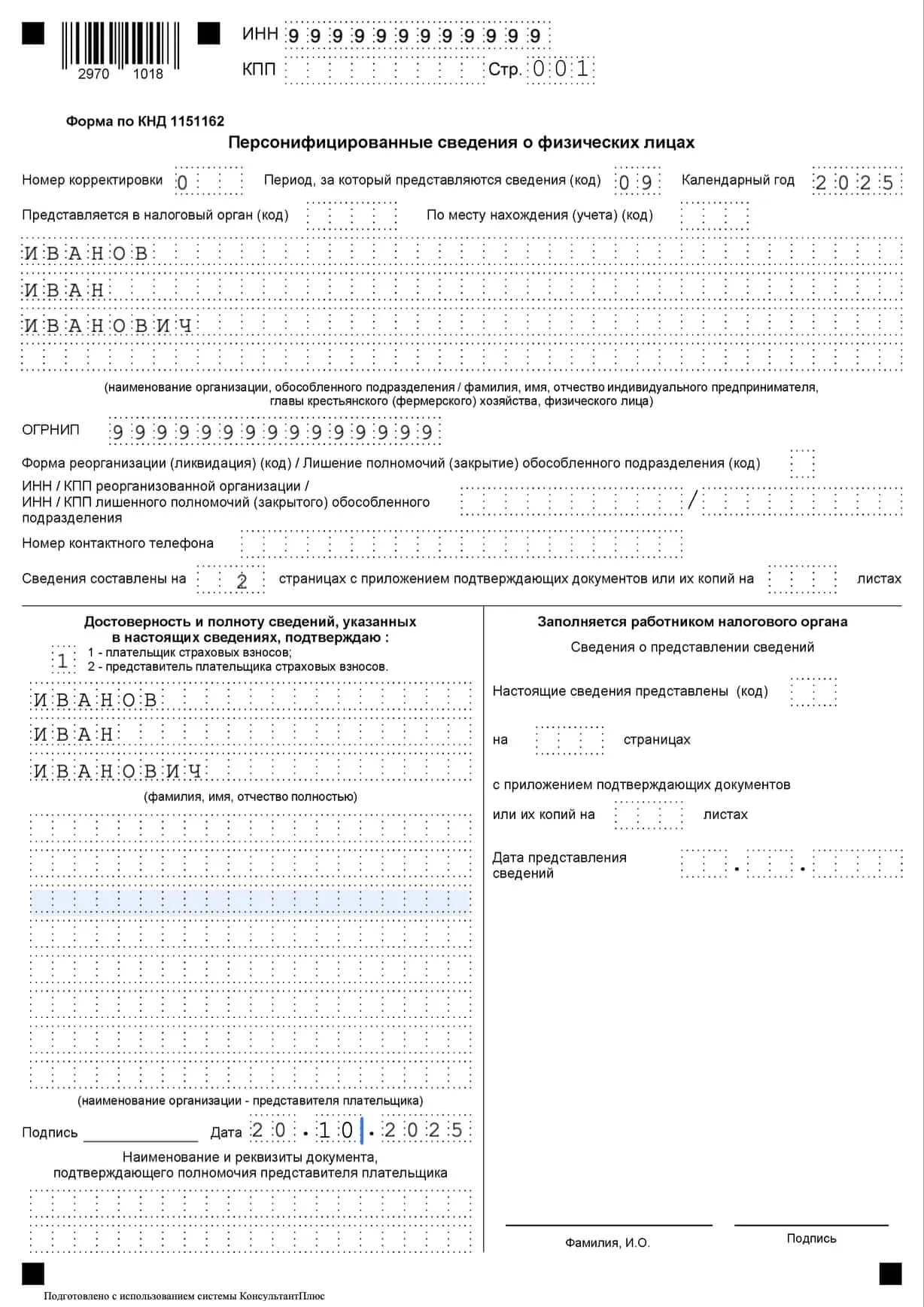 ИП Иванов сдаёт персонифицированные сведения за сентябрь 2025 года.