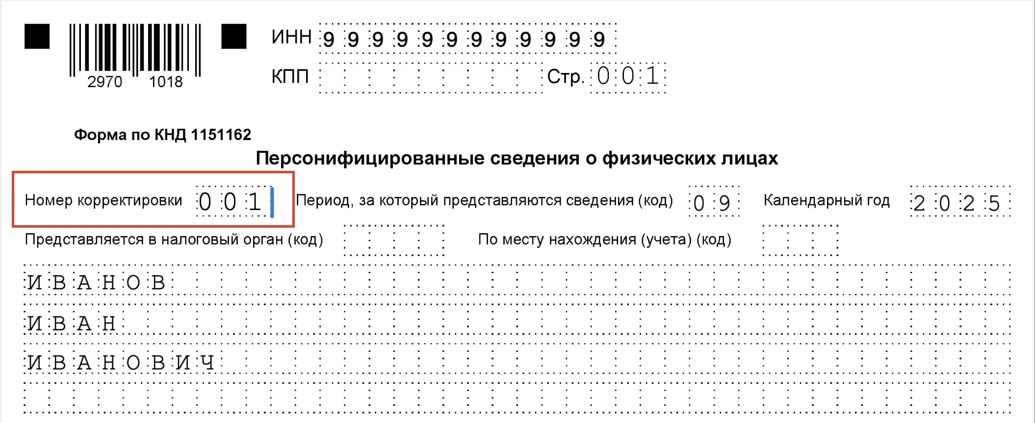 - «1-», «2-» и т.д. — при уточнении ранее поданного отчёта.