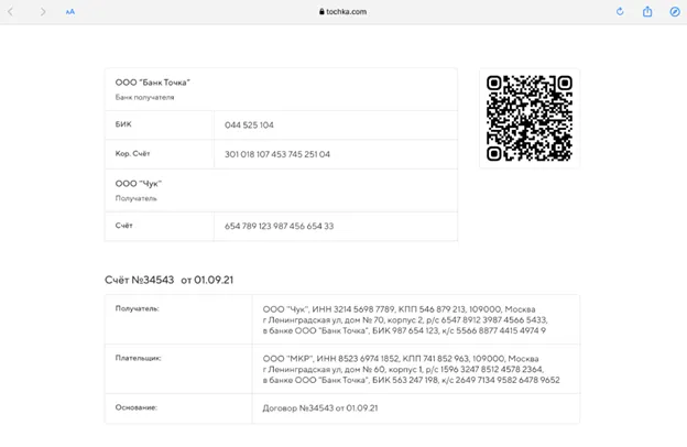 Для быстрой оплаты в счёте будет QR-код