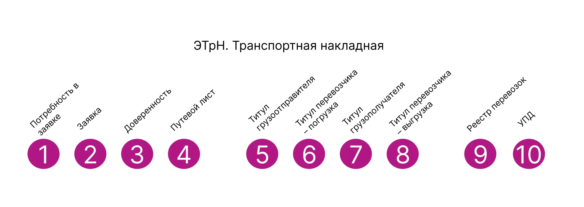 - Принцип единого звена ЭТрН. Все участники перевозки должны быть подключены к ЭДО — без исключений. Если хотя бы одно звено в цепочке не поддерживает ЭДО, то ЭТрН невозможно сформировать.