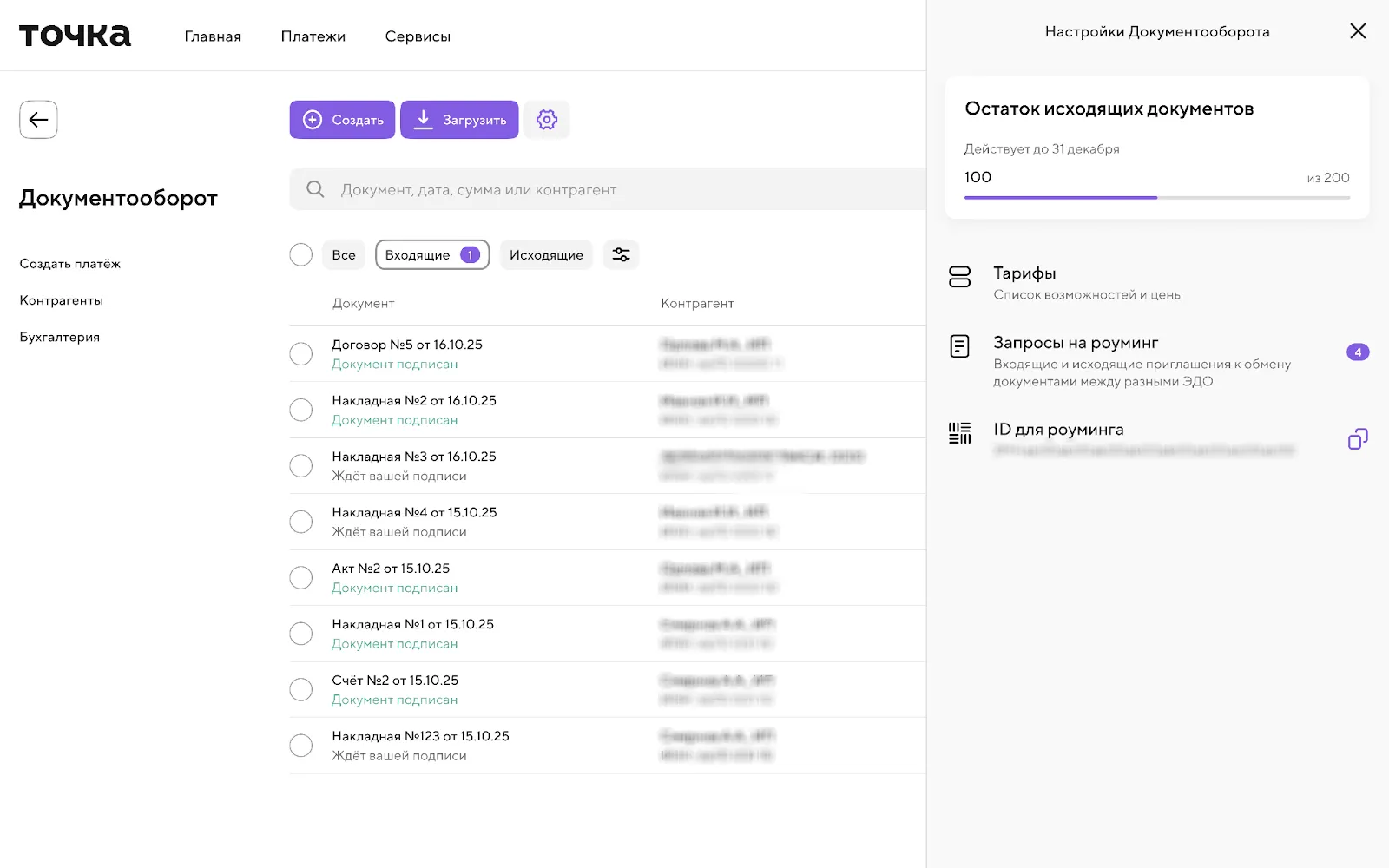 7. Готово! Теперь партнёр может отправлять вам документы. Вы увидите их в общем списке на главной Документооборота.