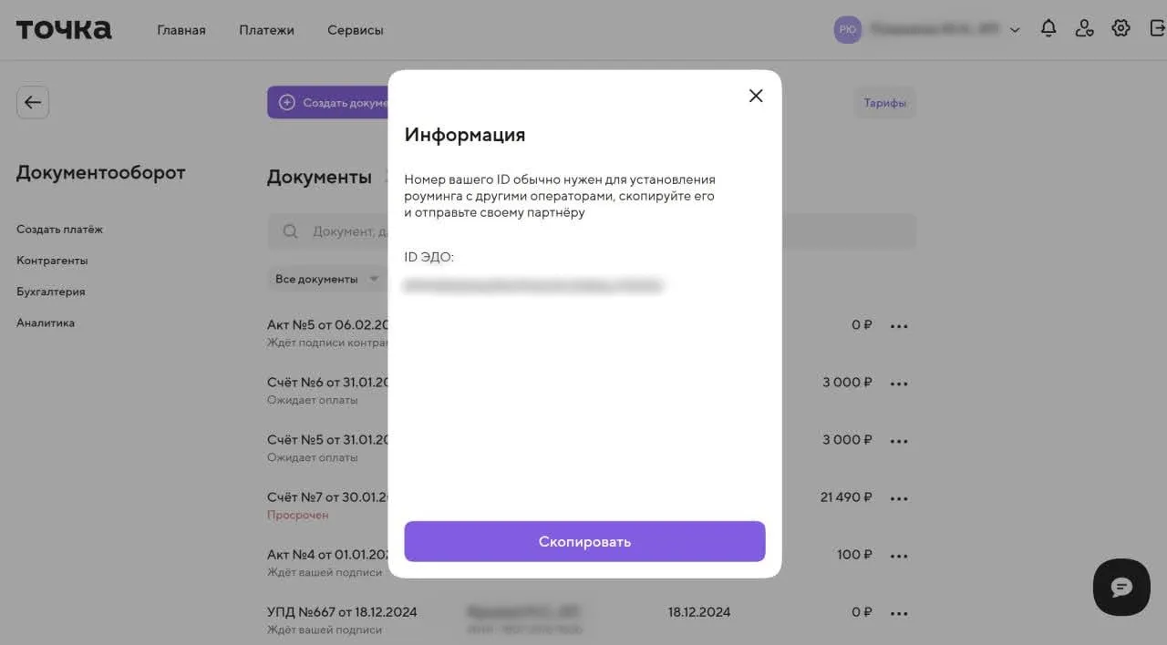 Если у вас есть счёт в Точка Банк, есть и ЭДО. А значит, партнёр сразу сможет отправить вам приглашение к обмену документами.