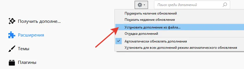 - Меню → Дополнения.