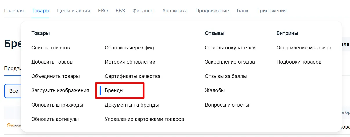 Начните вводить название марки, и маркетплейс покажет доступные варианты. Чтобы избежать блокировки, нужно иметь разрешение на продажу бренда или подтверждение существования бренда — это может быть упаковка с лого, маркировка и прочее.