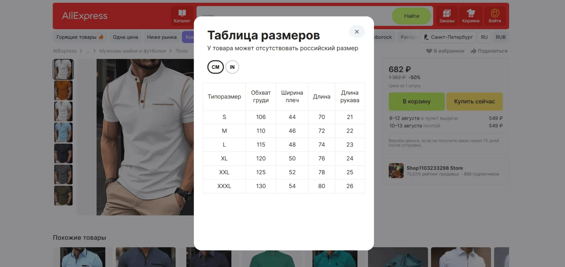 Некоторые магазины, например Aliexpress, публикуют подробные размерные таблицы с дополнительными рекомендациями по посадке, особенностям модели, единицам измерения (в сантиметрах, футах). Можно найти данные по категориям, например сетка для женской одежды или отдельно для верхней одежды, брюк.