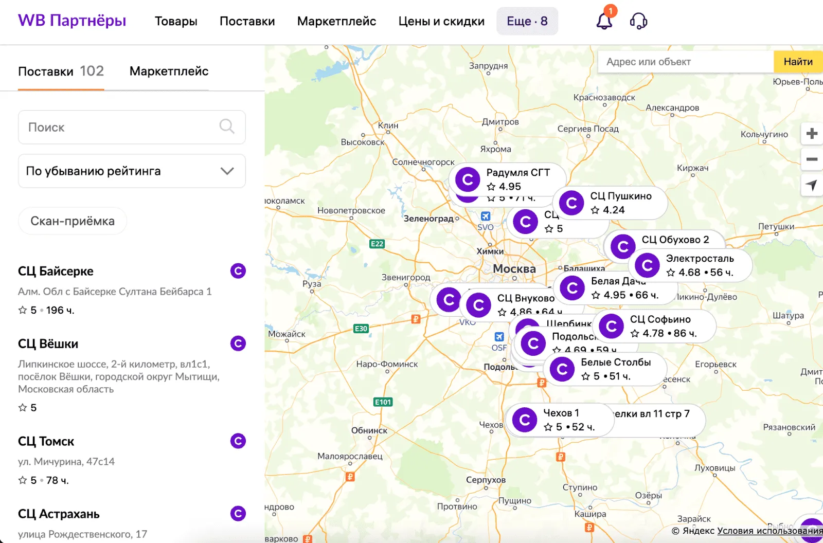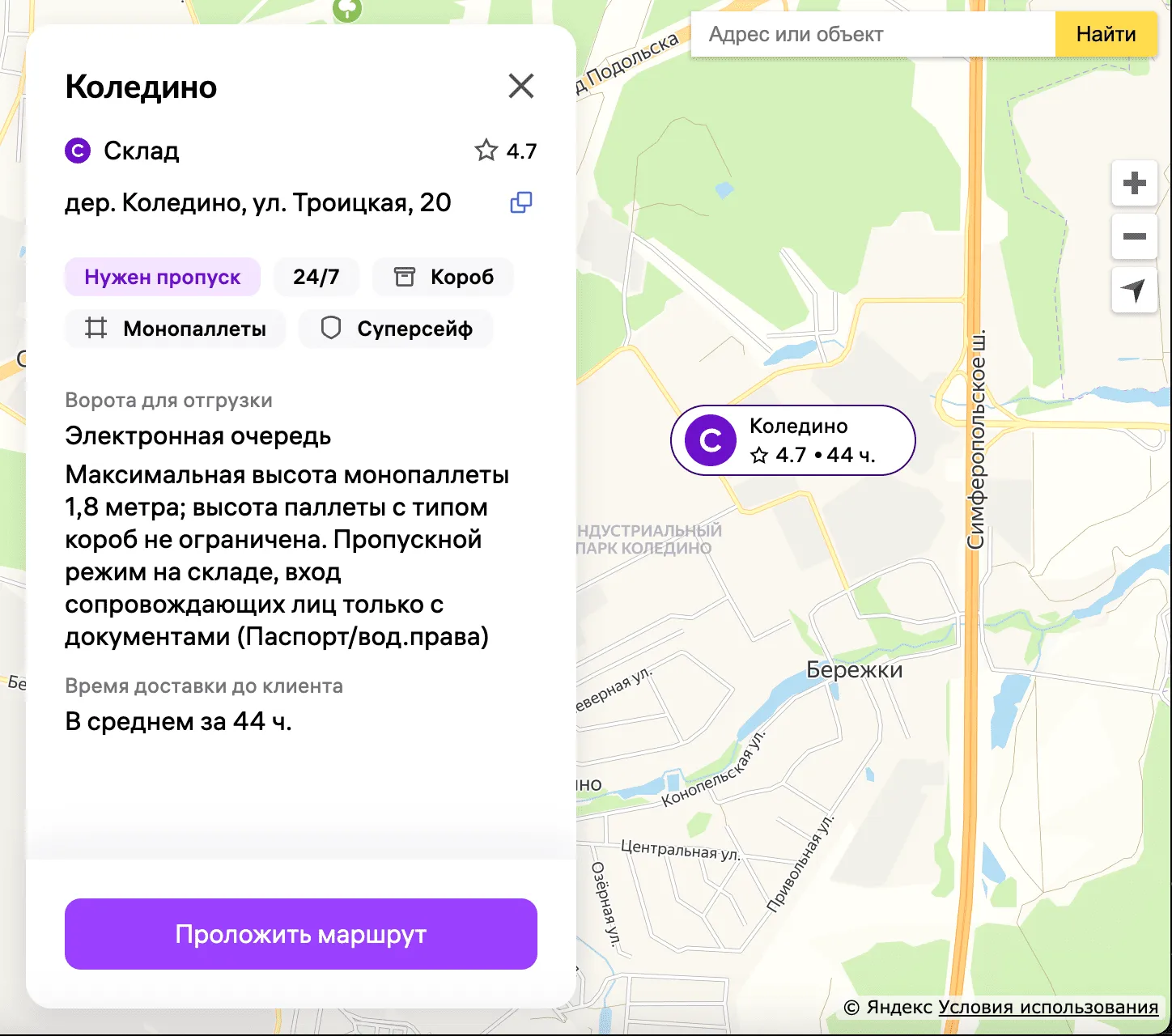 Поэтому эксперты по работе маркетплейсов единогласно советуют планировать первую поставку на любой из четырех центральных складов в Подмосковье. Так вы точно сможете показать свою продукцию всем пользователям маркетплейса, а также проанализировать, из каких регионов товар заказывают чаще.