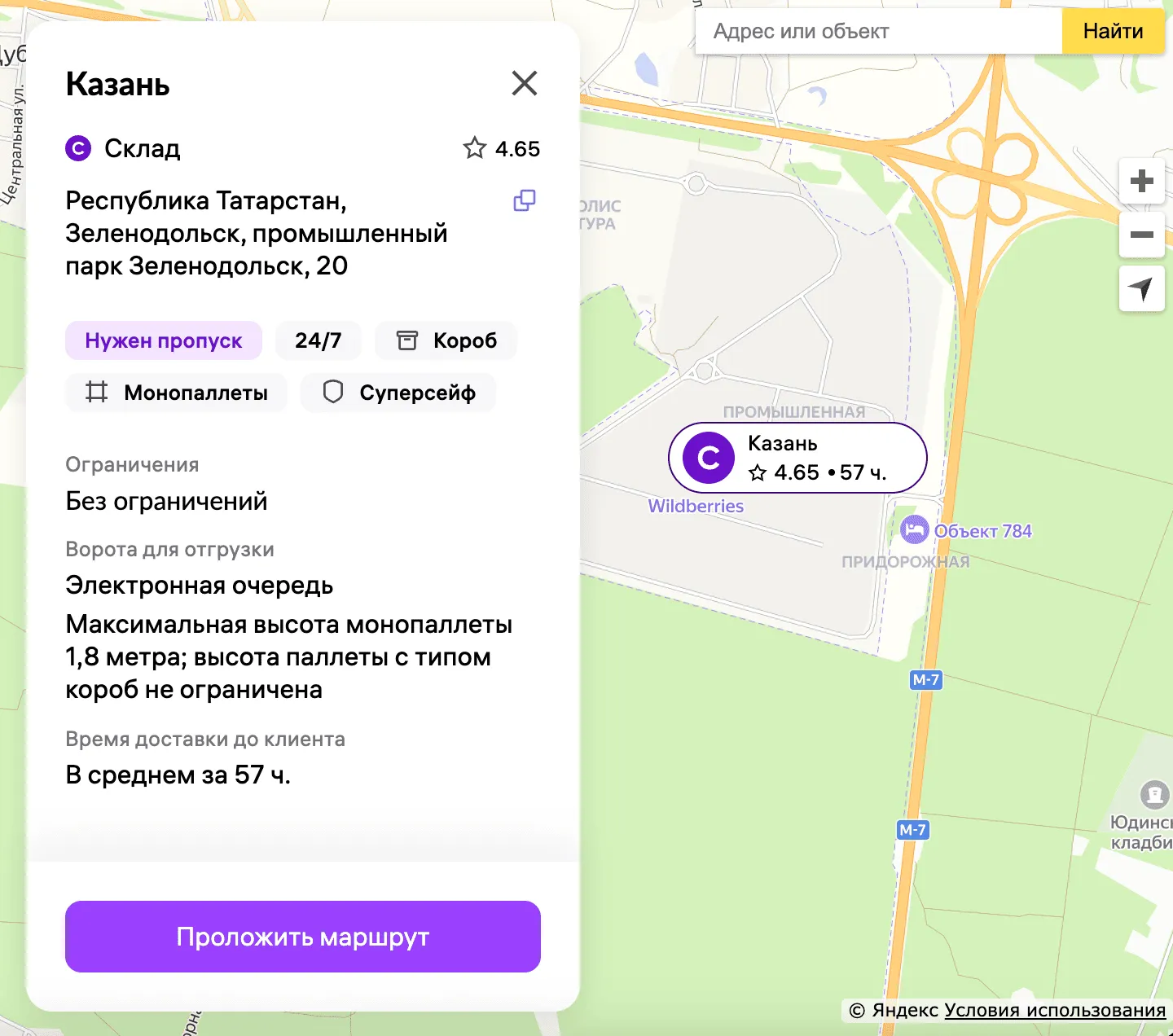 Зона, которую покрывает татарстанский склад — вся огромная Россия. Кроме того, с этого адреса товары уходят и по зарубежному направлению. Как отмечают поставщики, с казанского склада продукцию чаще всего перевозят для сортировки на центральный склад в деревню Коледино. Администрация WB рекомендует сотрудничать именно с этим складом из-за низкой стоимости перевозок и хранения паллет. Но решение о выборе склада принимают сами продавцы.