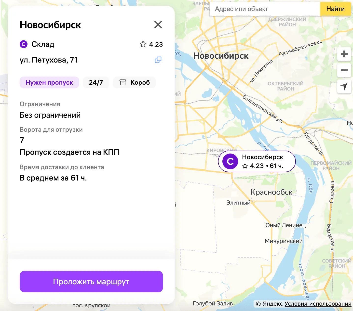 Новосибирский склад в основном закрывает потребности восточной и северной частей страны, а также ближайших республик. Эксперты отмечают, что продавцы могут существенно сэкономить на доставке, если будут отправлять товары, например, на склад Новосибирска. Путь до Новосибирска является транзитным и финансируется Вайлдберриз. Самому продавцу платить не приходится.