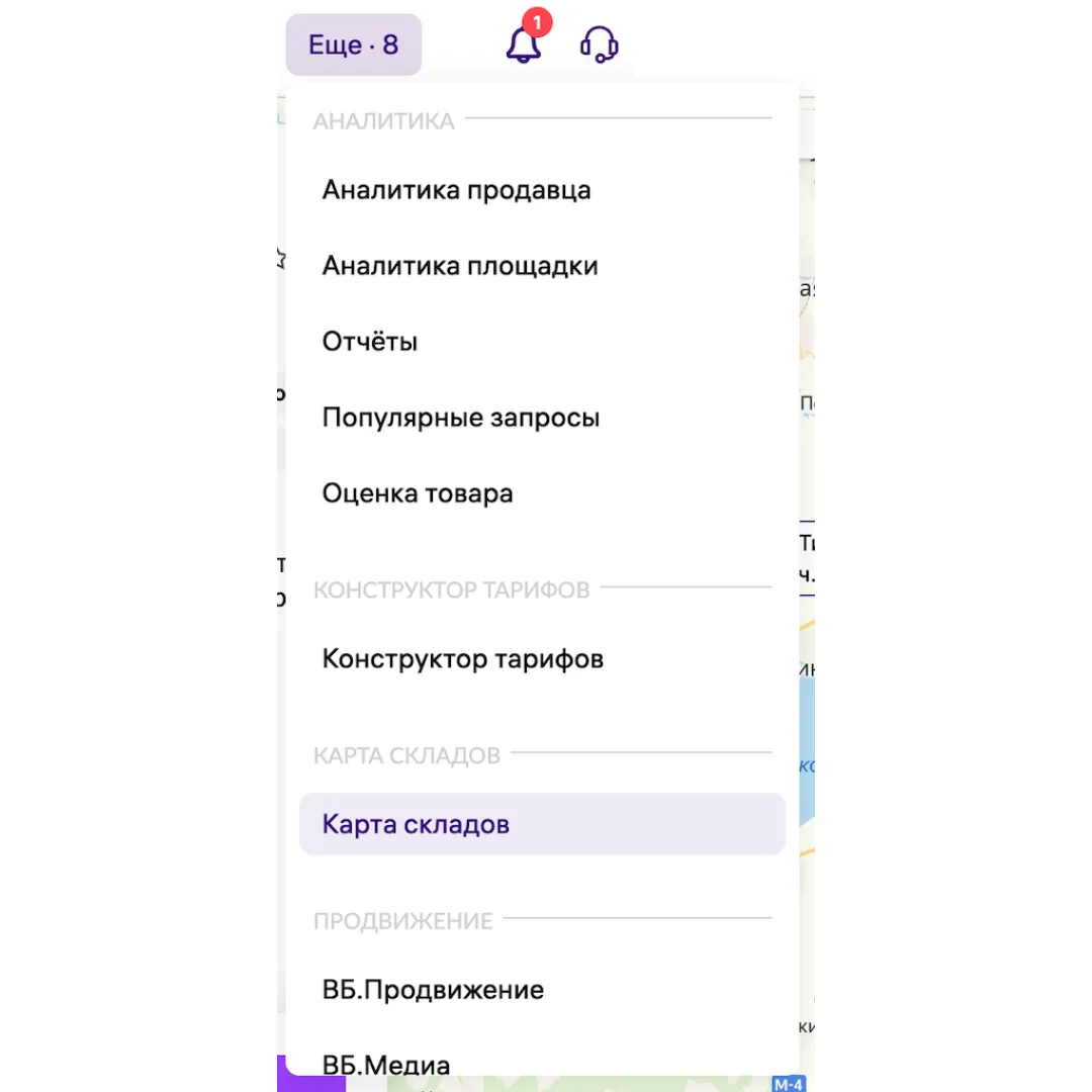 Полный список складов Wildberries можно посмотреть в личном кабинете продавца на вкладке «Карта складов»:
