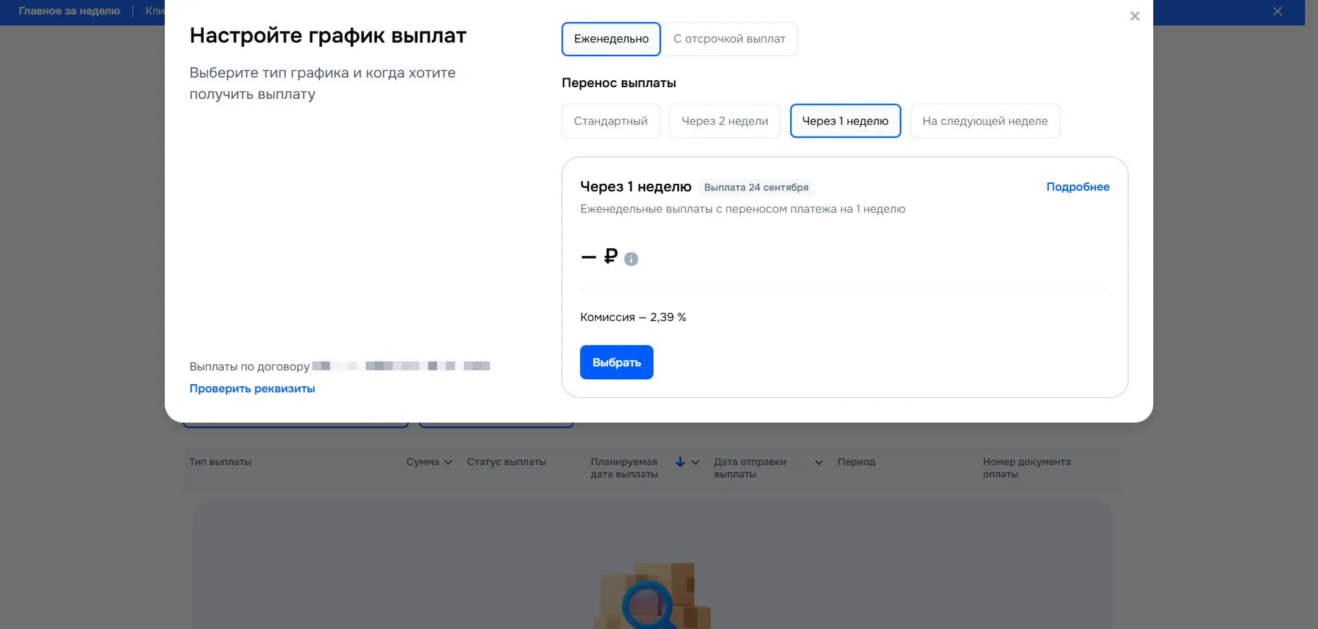 Чтобы активировать гибкий график, зайдите в личном кабинете в раздел «Финансы → Выплаты», в блоке с графиком выплат нажмите кнопку «Изменить график выплат». Далее выберите наиболее подходящие для бизнеса параметры.