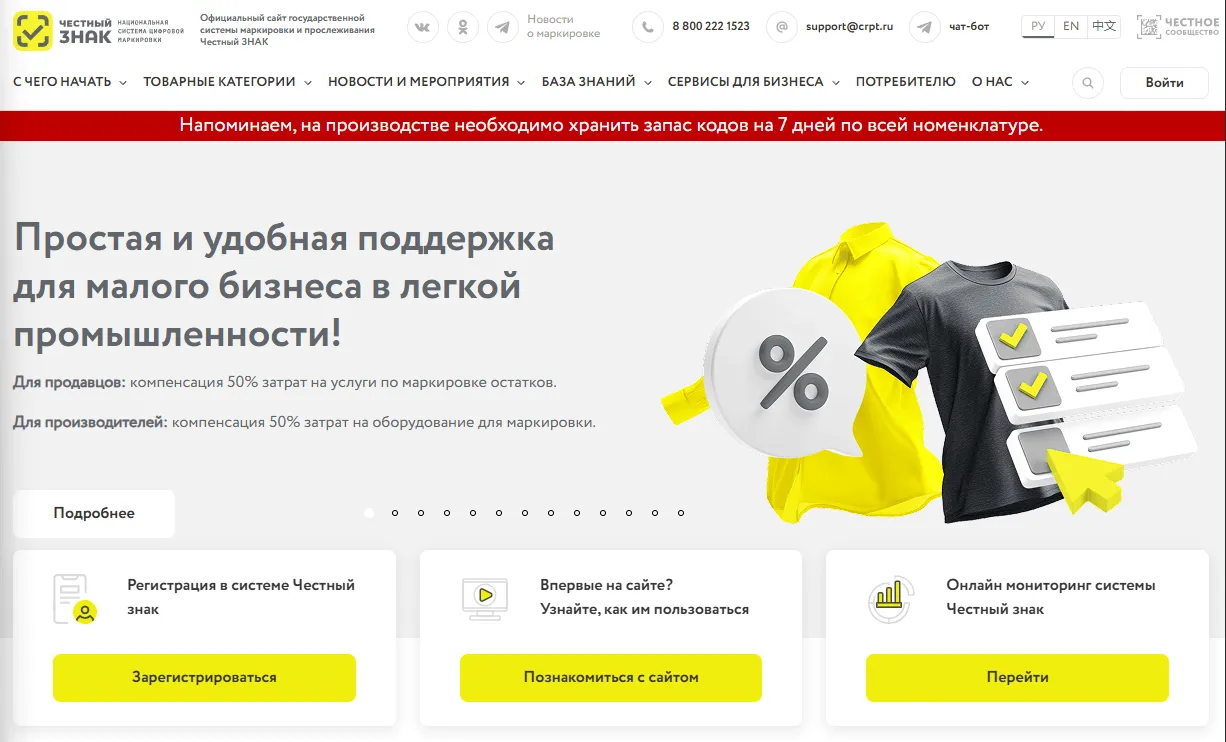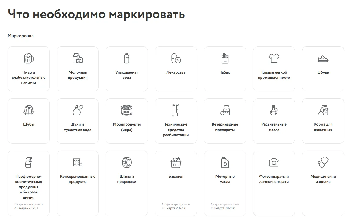 Актуальный список категорий и особенности процесса публикуются на сайте честныйзнак.рф
