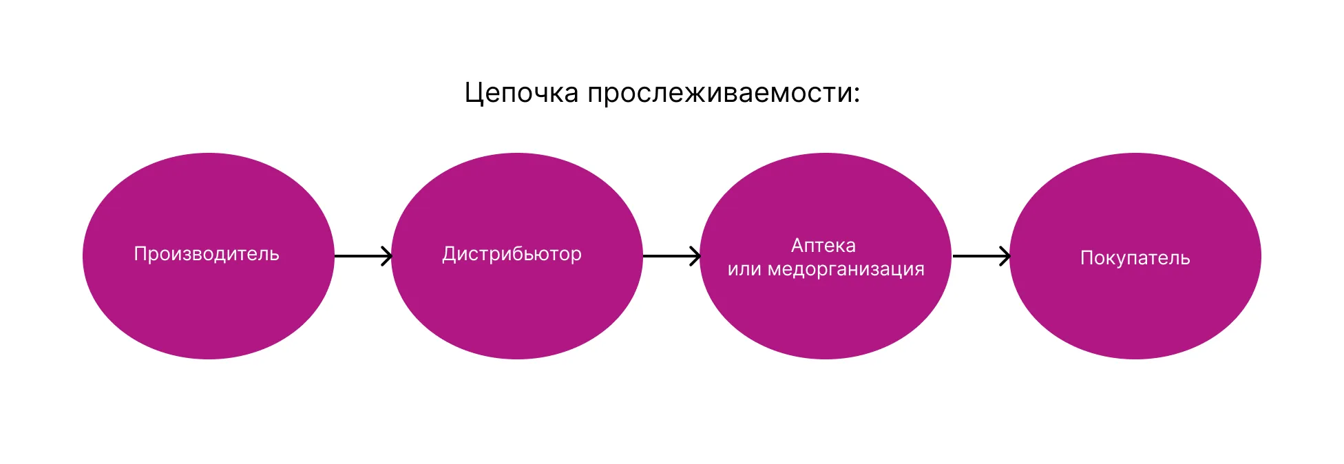 - Система обеспечивает учёт движения каждой упаковки — её ввод в оборот, перемещение между участниками цепи и выбытие, когда препарат отпускается конечному покупателю.