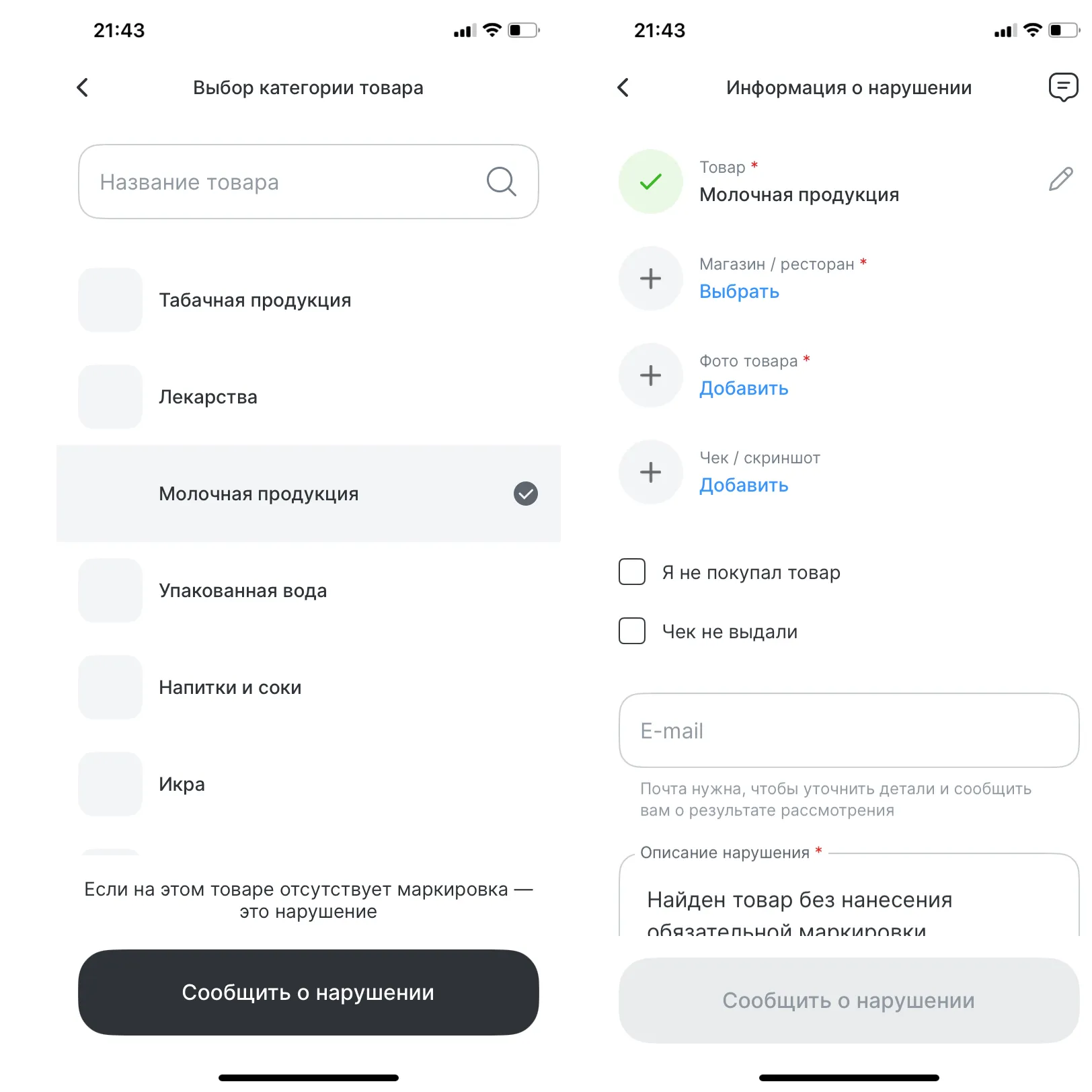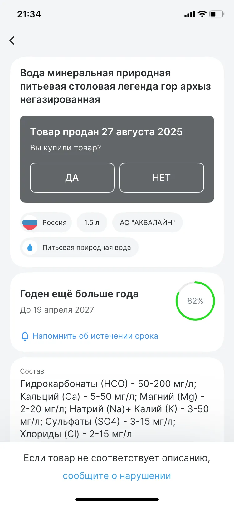 Если данные в приложении отличаются от информации на товаре, лучше отказаться от покупки. Например, может не совпадать дата производства или производитель. В таких случаях стоит сообщить о проблеме в Роспотребнадзор или через приложение — это поможет защитить себя от подделок.