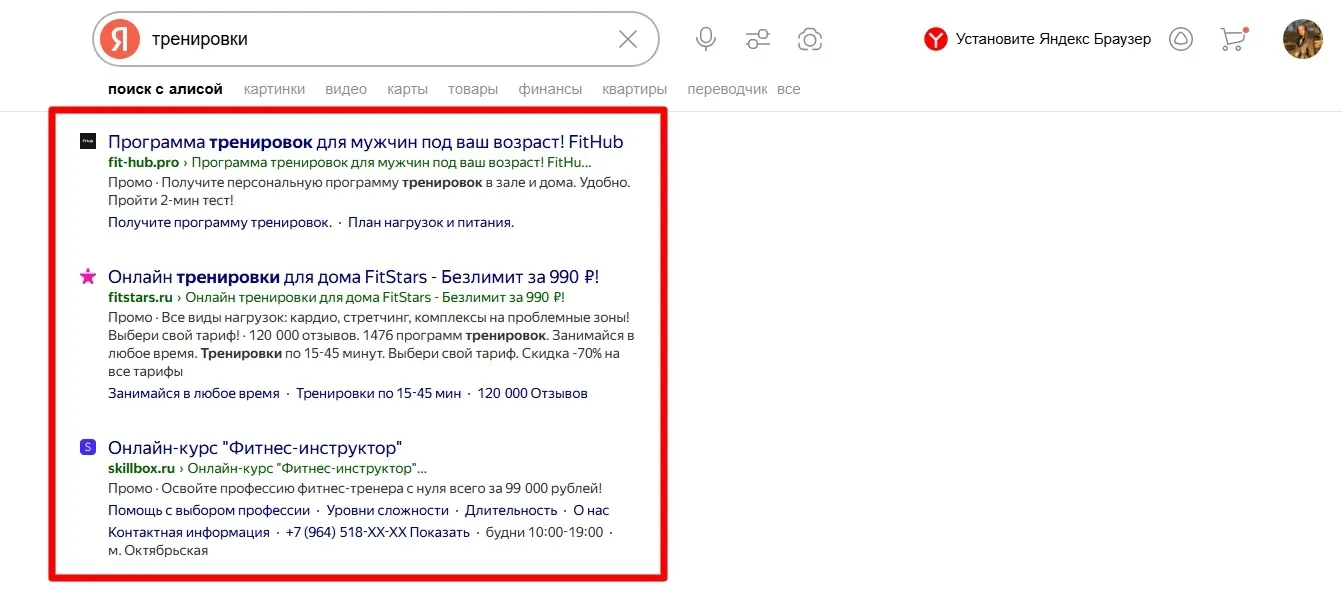 Пример рекламы в поиске