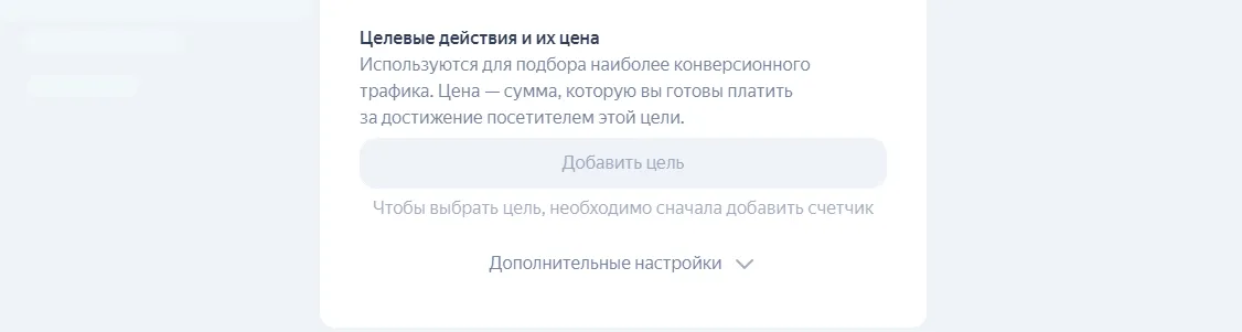 Выберите целевые действия из уже созданных в Яндекс Метрике. Алгоритмы будут ориентироваться на них при оптимизации показов.