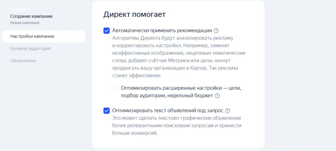 Алгоритмы Яндекс Директа могут самостоятельно анализировать объявления и изменять их настройки для увеличения конверсии. Для этого нужно разрешить площадке подбирать более эффективные изображения и целевые тематические слова, оптимизировать текст.