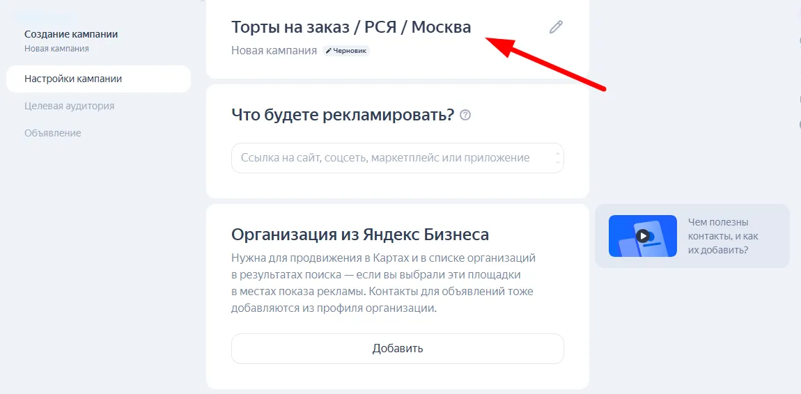 1-й шаг: создайте кампанию