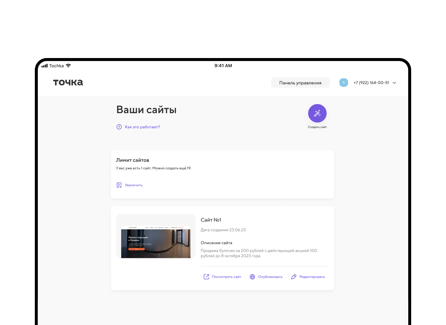 Шаг 1. Зарегистрируйтесь в сервисе. Счёт в Точке не нужен для работы с генератором сайтов.