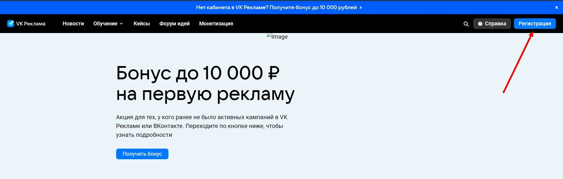 Если личный рекламный кабинет ранее не создавался, при переходе в раздел «Реклама» пользователь автоматически попадает на страницу регистрации в новом кабинете VK Ads, который заменил классический интерфейс.