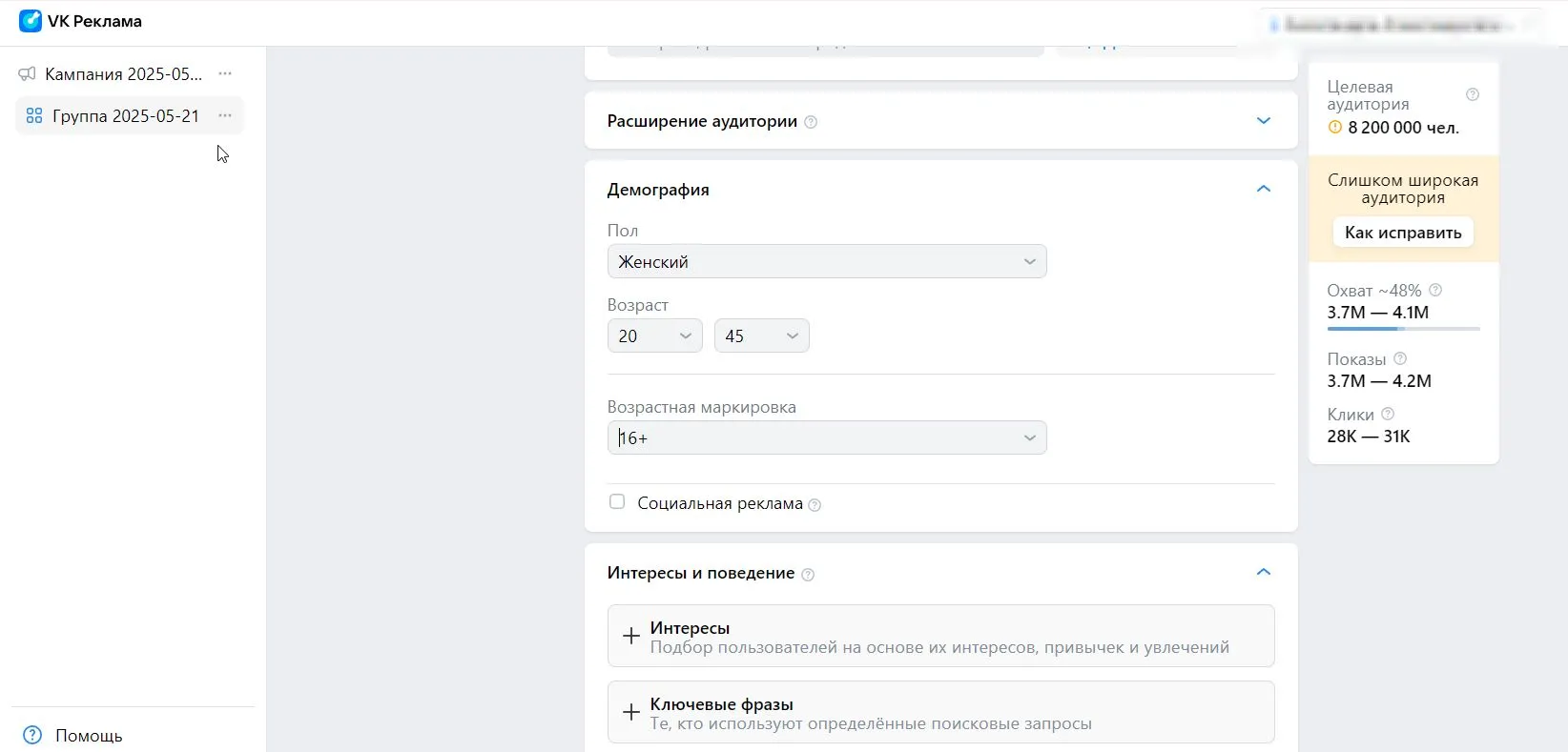 Есть возможность включить оптимизацию бюджета, чтобы система автоматически направляла больше средств на те группы, которые приносят лучшие результаты. Анализ группы в ВК будет особенно полезен для оценки общей эффективности объявлений внутри одной кампании.