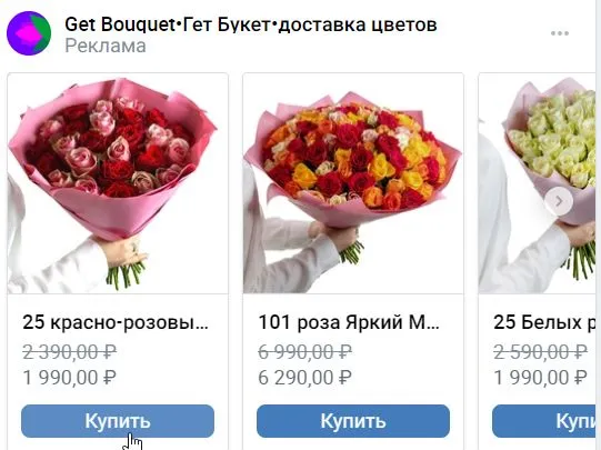 Реклама с несколькими карточками, по которым можно листать влево-вправо. Удобно показывать несколько товаров, преимуществ или шагов.