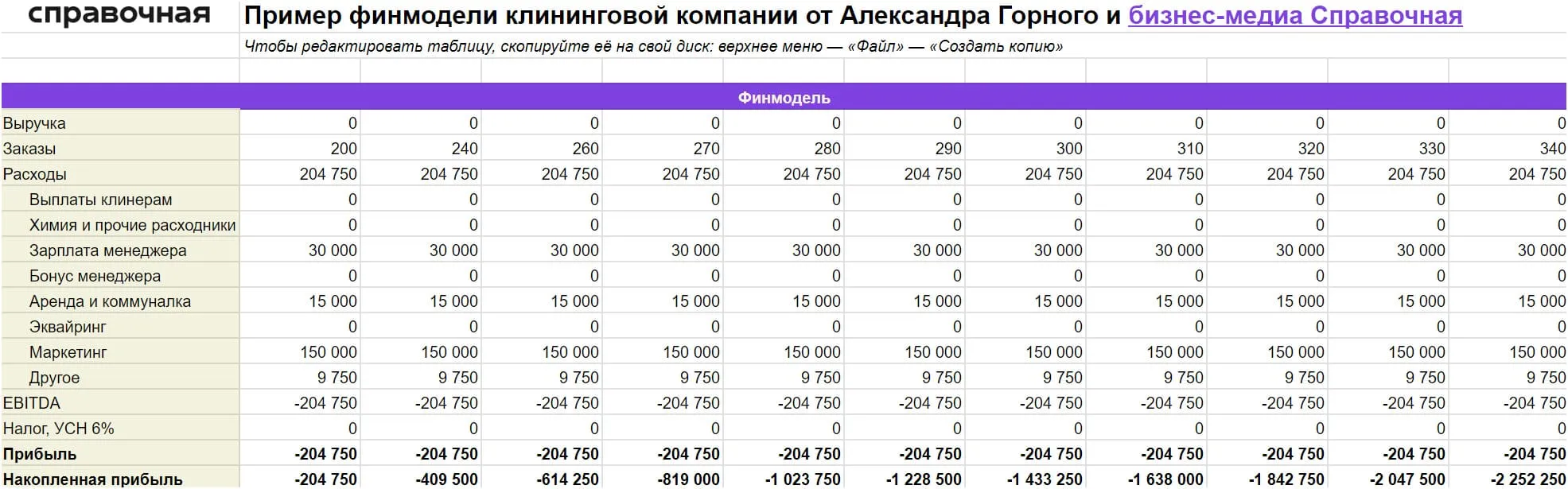 Чтобы не ошибиться в расчётах, стоит составить финансовую модель: она покажет, сколько денег нужно на старте, когда бизнес выйдет в точку безубыточности и какой запас держать на непредвиденные расходы. Составить такую таблицу можно в Excel или Google-таблицах.