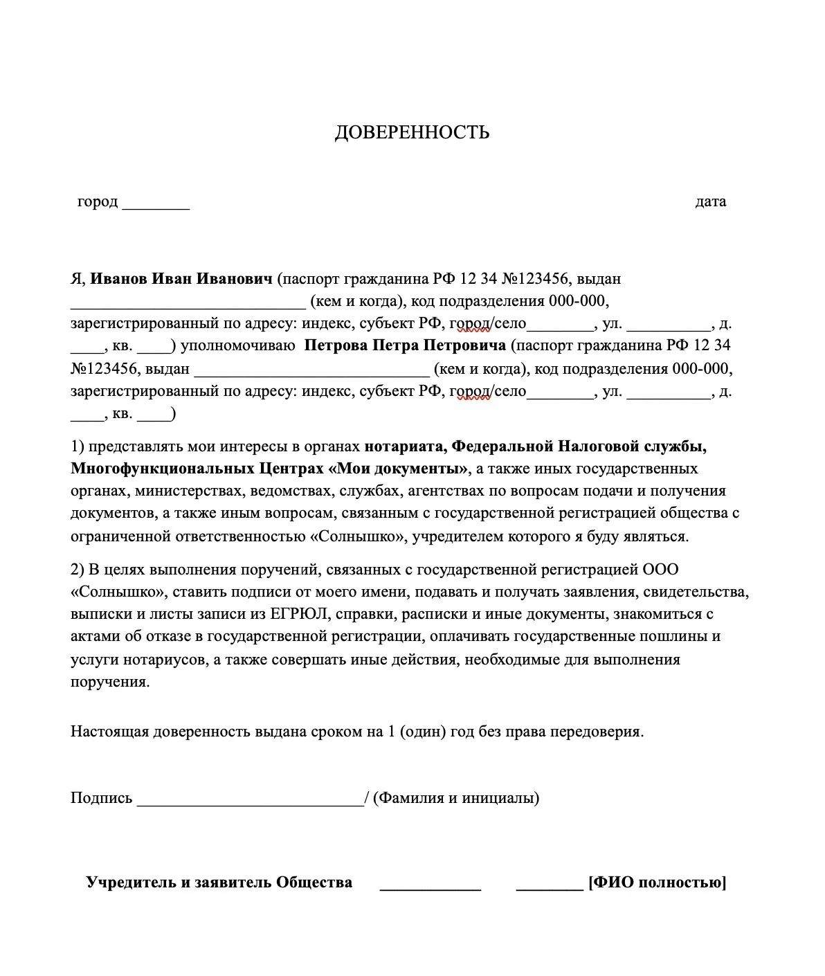 Образец доверенности для регистрации ООО