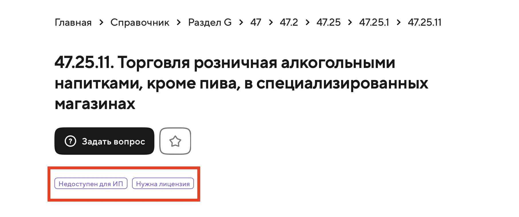 - Торговля алкоголем, кроме пива — 47.25.11.