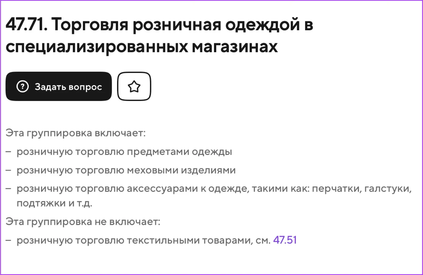Дополнительные коды ОКВЭД нужно выбирать для товаров, которые планируете продавать. Обычно они отражают категорию товара: продукты питания, текстиль или что-то другое. Плюс если планируете хранить и доставлять товары сами, то это также стоит отразить в кодах. Ниже смотрите ОКВЭД для магазина одежды.