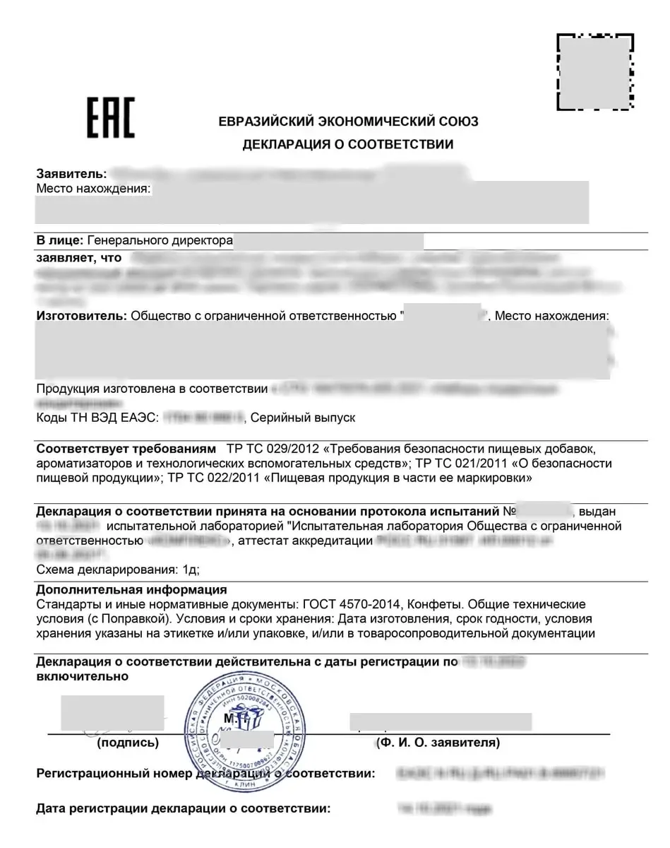 К декларации также прикладывают макет этикетки с обязательной маркировкой ЕАС — он проверяется на этапе испытаний.