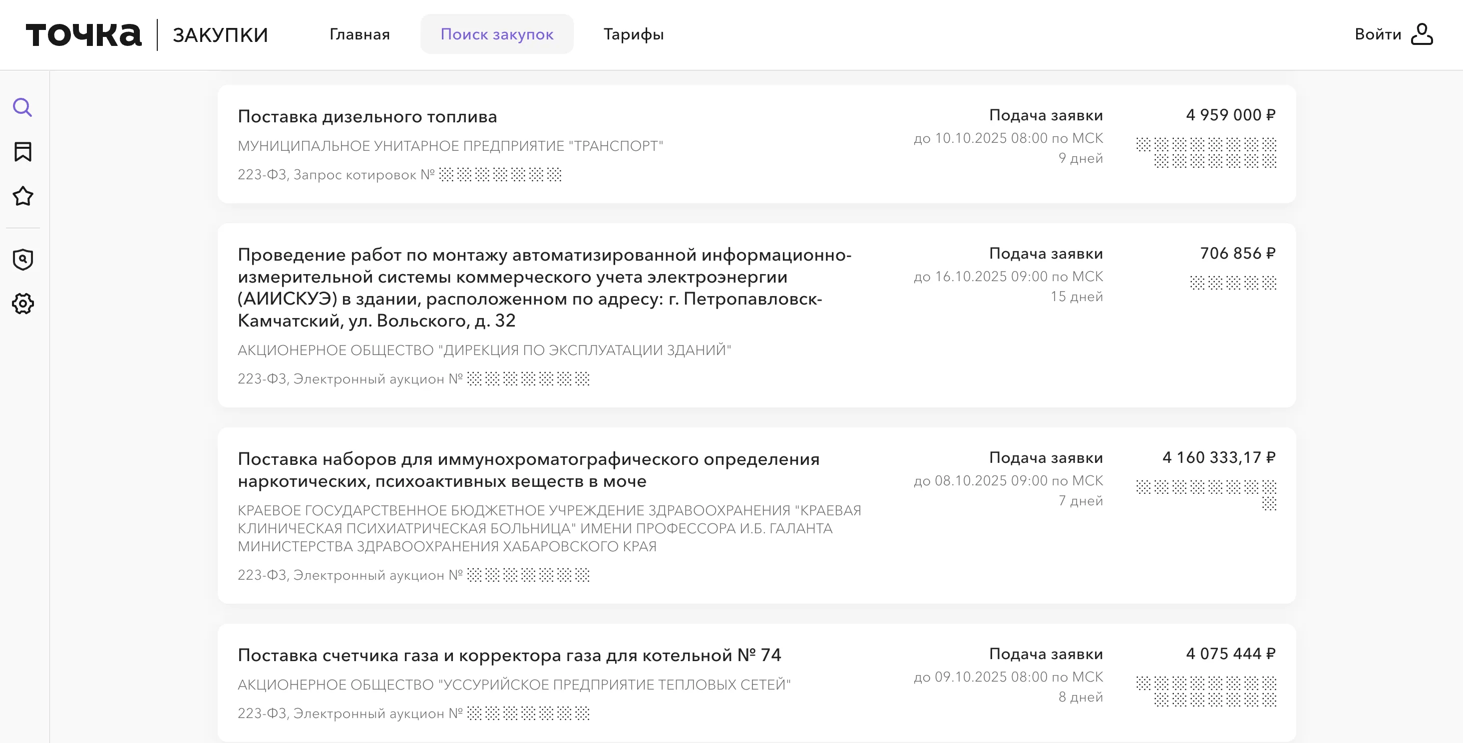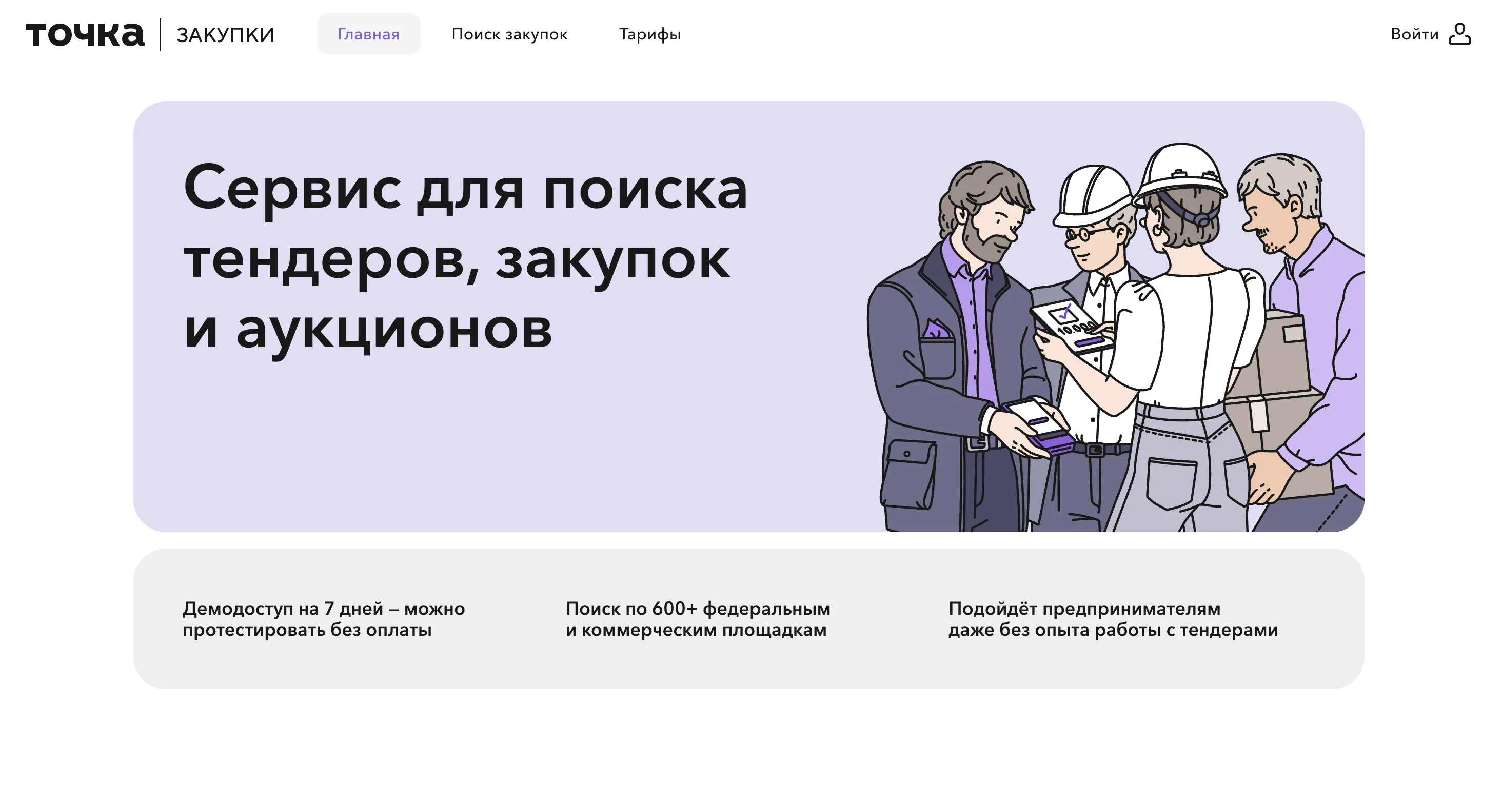 Чтобы не искать тендеры самостоятельно по разным ЭТП, воспользуйтесь сервисом подборка закупок от Точка Банка. Мы соберём информацию с разных площадок и пришлём уведомление о новых тендерах.