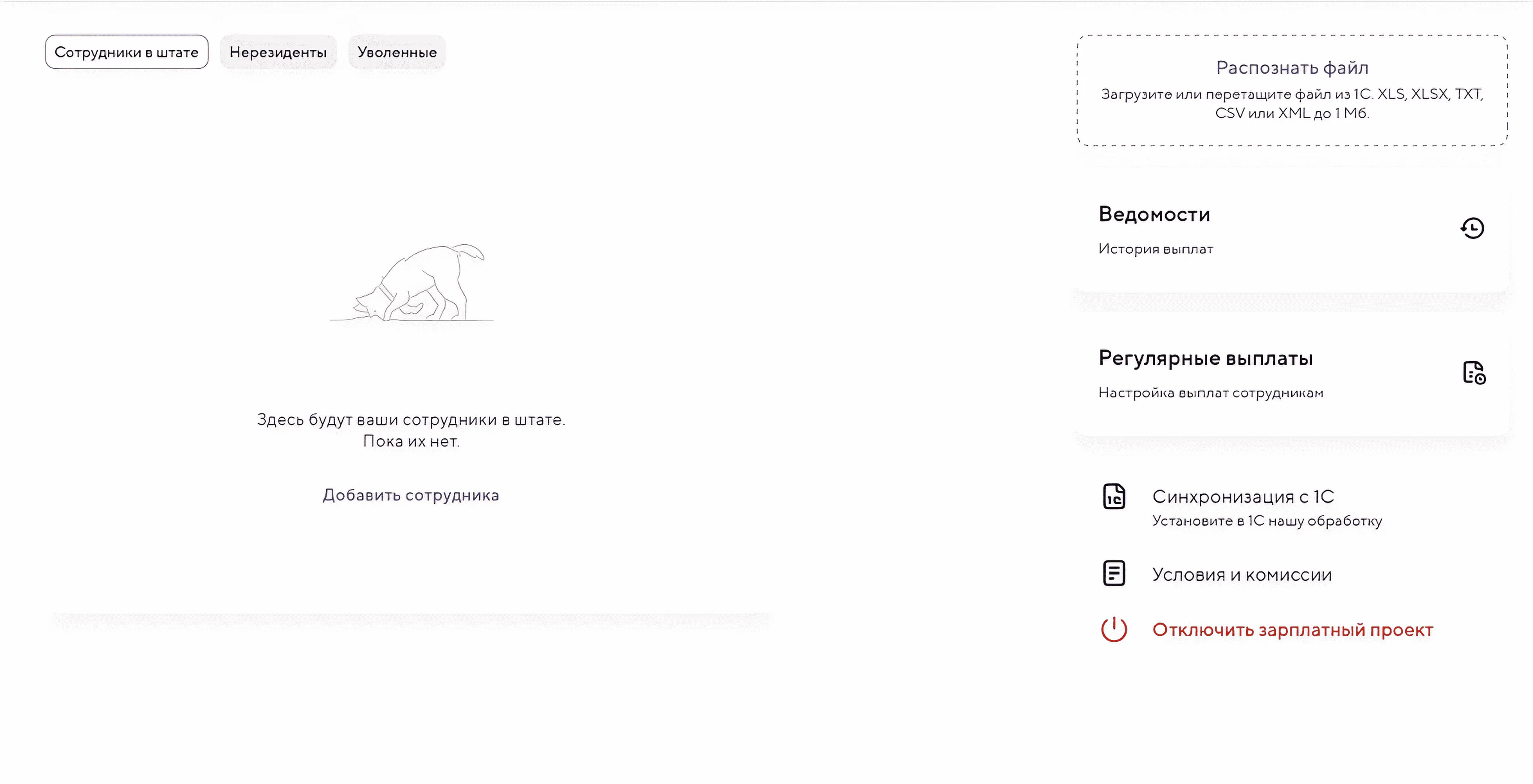 Зарплатный проект нужен для упрощения работы, поэтому главное — быстрая настройка и возможность перечислять выплаты на любые карты.