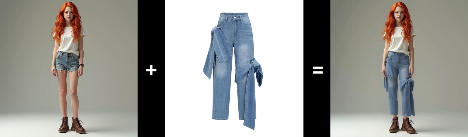 Одежда выглядит естественно даже при несовпадении ракурсов – например, если вещь снята фронтально, а модель сгенерирована в пол-оборота.