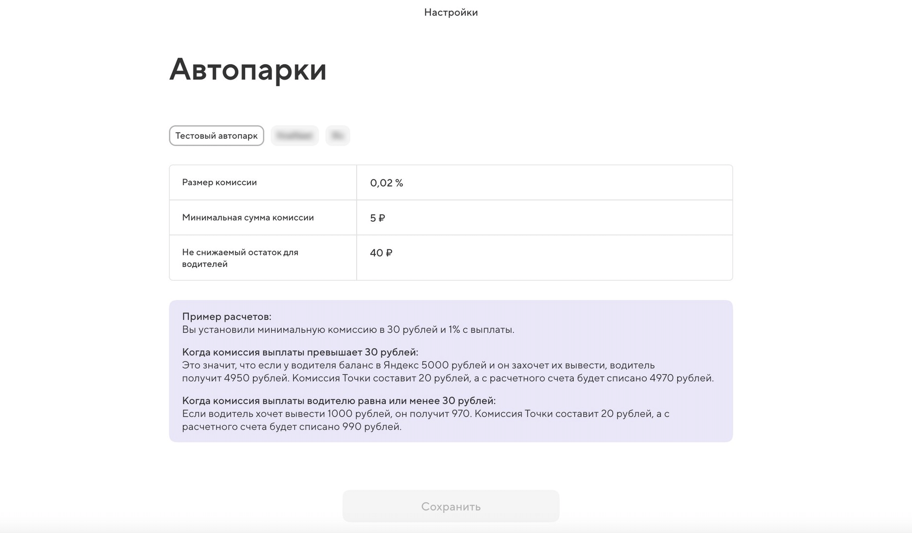 Можно изменить размер вашей комиссии, выбрать другой счёт для списания денег, и даже добавить новые автопарки.